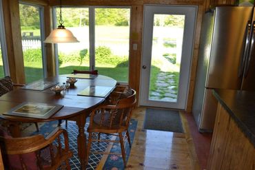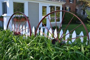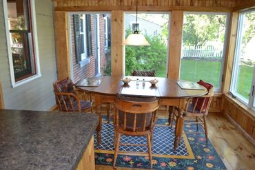 The renovated kitchen offers two gas stoves, two microwaves, two sinks, dishwasher, beverage station with Keurig machine, electric teapot, coffee pot, toaster, and toaster oven. The dining area off the kitchen is a lovely spot to enjoy breakfast in the morning sunlight, overlooking the fenced garden & crab apple tree.