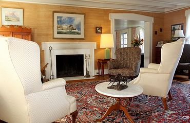 Formal living room with fireplace and ample seating. This room offers family history and pieces collected from family travels.
