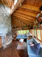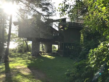 This architecturally unique & rustic vacation home was designed and built by Selby & Maureen Turner in the early 1970s. Now lovingly maintained by their children, the Treehouse holds an eclectic mix of treasures and tales. Built around three large metal cylinders, the house is accessed by an outdoor staircase below & has ladders up to two levels of decks. While the house sits among the trees, the top deck is tall enough to peer over the treetops and out across the lake. Nestled in the woods on a bluff & you can fall asleep listening to the lapping of the water on the rocks below.